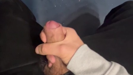 Risky jerk off on a public train, huge cumshot