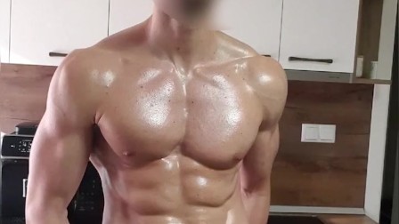 6'7" oiled muscular stud flexing and stroking his BWC